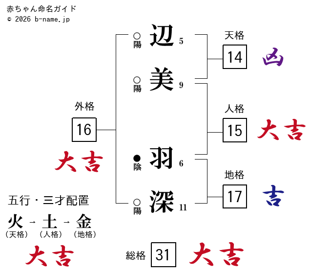 辺美羽深 うみ という姓名の女の子の姓名判断診断結果 名前の字画数から姓名判断をする 完全無料の子供の名前決め 名付け支援サイト 赤ちゃん命名ガイド