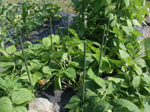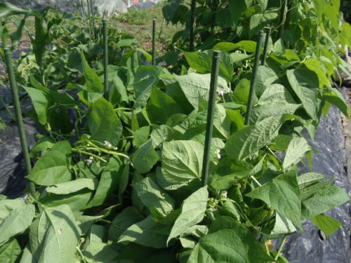 つるなしインゲンの倒伏防止 どうせ支柱を設置するならつるありの方がいいように思いますが 家庭菜園デザインノート 楽天ブログ