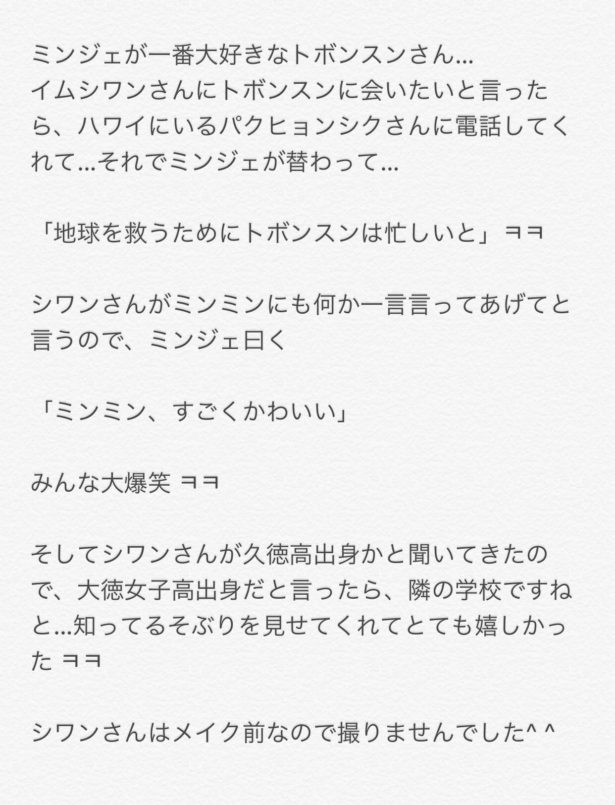 Kaphs1116na On Twitter Instagram翻訳 170426 子役俳優モデル ソンミンジェ Https T Co Kdbbjholv4 シワン がハワイにいる ヒョンシク に電話してくれて 電話の向こうの笑い声はヒョンシクかと 可愛いエピソードはリプに 박형식 임시완 Https