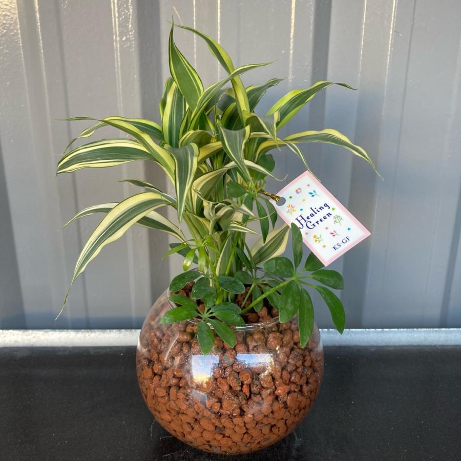 Amazon Co Jp ハイドロカルチャー寄せ植え ハイドロボール かわいい丸いガラス鉢に寄せ植えした観葉植物です ハイドロボールは無菌 無臭でとても清潔なので いろいろな場所に飾って楽しめます また贈り物にも最適です ホーム キッチン