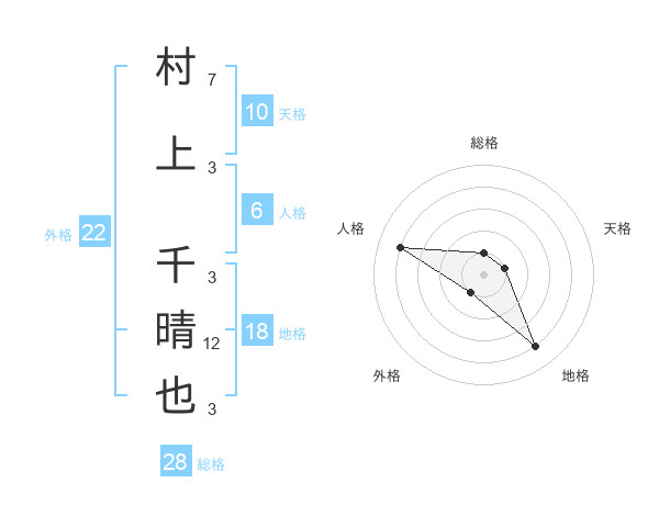 村上 千晴也さんの名前の鑑定結果は 姓名判断ネット