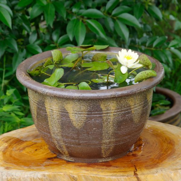 睡蓮鉢 メダカ鉢 金魚鉢 ビオトープに 信楽焼 窯肌櫛目 睡蓮鉢 13号 水あふれ防止穴有り 黄花睡蓮マリアセアクロマティラ裸苗他合計5点プレゼント Sset 052 石田精華園 Yahoo 店 通販 Yahoo ショッピング