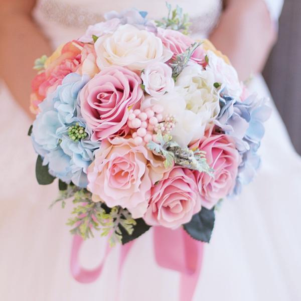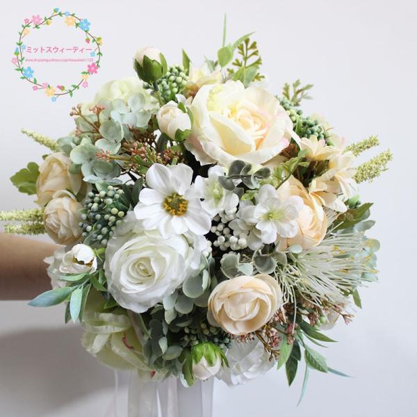 楽天市場 ウエディングブーケ 結婚式 ウェディングブーケ 花嫁 ブーケ 手作り ブライダルブーケ 造花 ラウンドブーケ ウェディング用 二次会 渋谷ウイングス