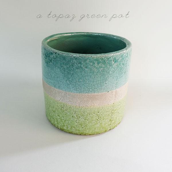 植木鉢 おしゃれ 陶器鉢 パシフィックブルーポット 11cm 4号 穴なし ツヤあり 緑 青 鉢カバー プランター 釉薬 貫入 ヒビ 鉢