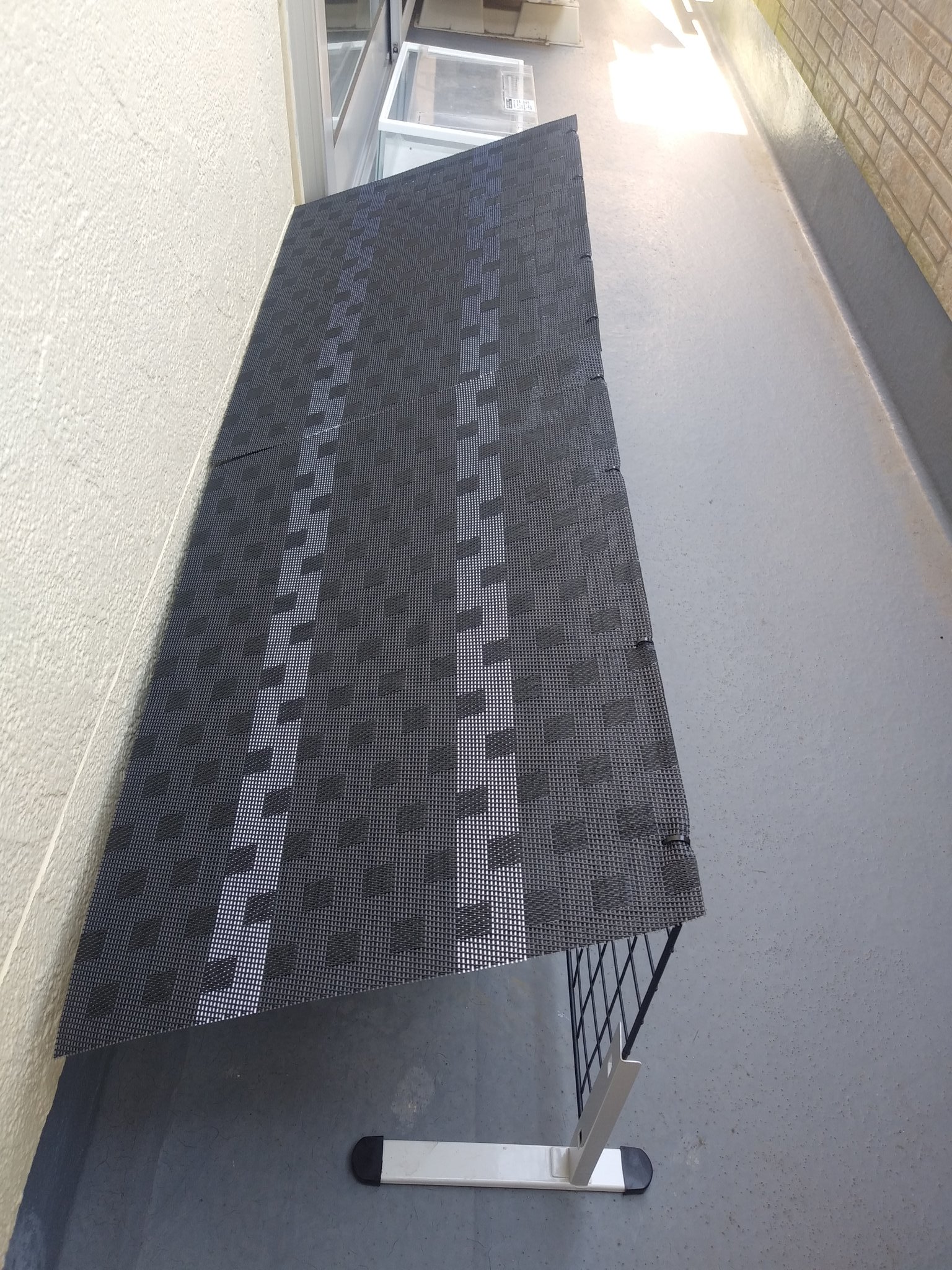 ここちー On Twitter ベランダのメダカちゃんの日除けを作ったよ 材料はダイソーで ちょうどいいランチョンマットがあったから一緒にくくりつけて 日光浴させる時はペラっとめくれます なかなかよくできたと思う メダカ 日除け